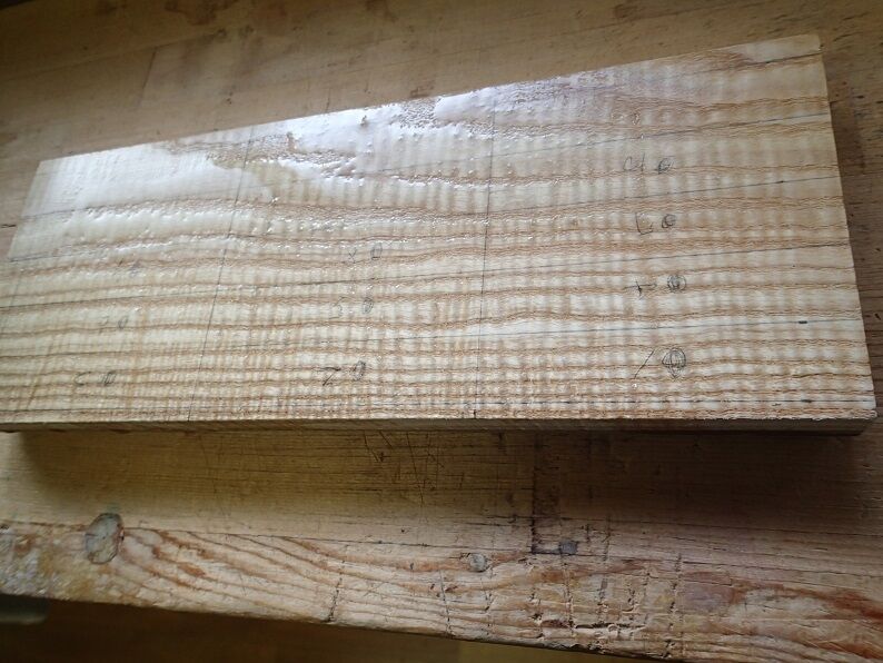 タモの縮み、この板から作ります。